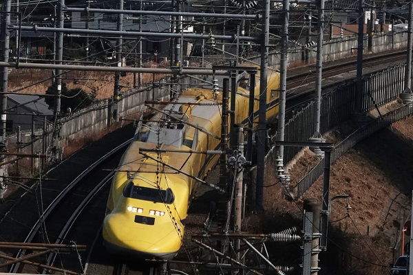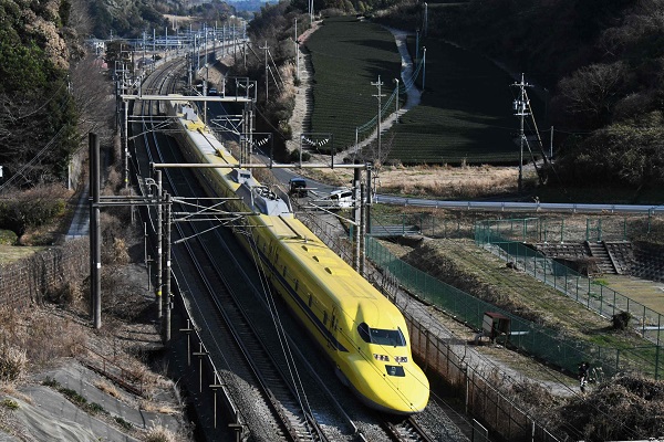 大谷真弘2026年初の東京~博多間を「ドクターイエロー」が検測した。‘26.1.5 東海道新幹線 静岡~掛川(2点共) 2026年1月5日、今年初めて博多総合車両所所属の新幹線電気軌道総合試験車T5編成「ドクターイエロー」が、東京~博多間の本線検測を実施した。T4編成が廃車されて以降一編成で頑張ってきたT5編成の運行も、あと1年となった。■関連記事◆新幹線923形「ドクターイエロー」2025年最後の検測P:大谷真弘