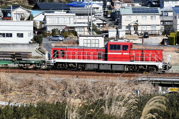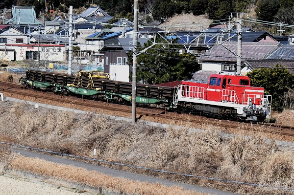 2026年1月11日、黒崎をチキ12両で出発したロングレール輸送列車は、途中の西浜松でチキ9両を開放。その後は、50mレール28本を積載したチキ5500-13、14、15の3両が、愛知機関区所属DD200-21の牽引で静岡貨物まで運転された。