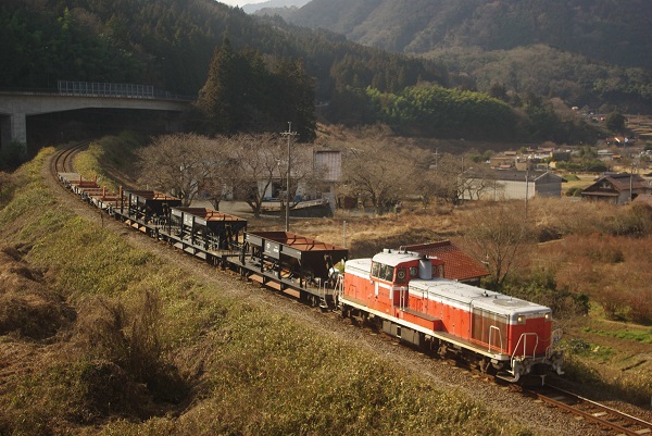 2026年になってから、山口線ではディーゼル機関車単機によるハンドル訓練運転が実施されているが、今シーズン初めて貨車連結による訓練運転が行われた。編成は DE10 1531+ホキ800 3B+チキ5300 3B だった。小春日和の好天の下、沿線には多くのレイル・ファンが集まった。