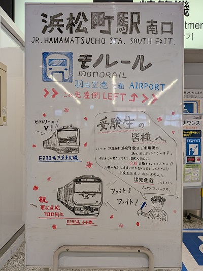 受験シーズンまっただ中の2026年1月24日、東京モノレールとの乗り換え駅である浜松町駅で受験生へエールをおくるメッセージボードが目に入った。少なからずの不安を抱え、飛行機で上京した受験生にとって、初めての乗り換え駅でのこのメッセージは、きっと勇気づけられることだろう。