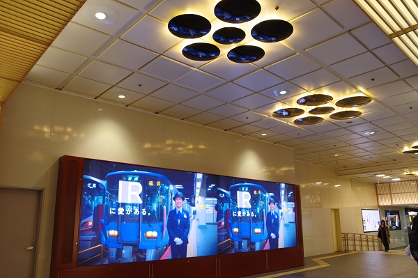 金沢駅では以前から東西を結ぶコンコースに並ぶデジタルサイネージが稼働中。