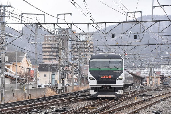 2026年2月7日、E257系5000番代OM93編成の臨時特急「あずさ83号」が運転された。
