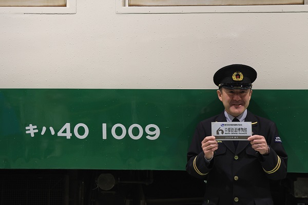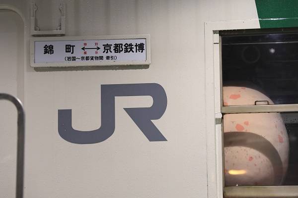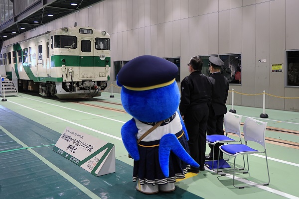 2月11日は、11時から入線シーンが公開され、錦川鉄道社長、京都鉄道博物館館長、ゆるキャラのウメテツくんが参加してセレモニーが行われた。