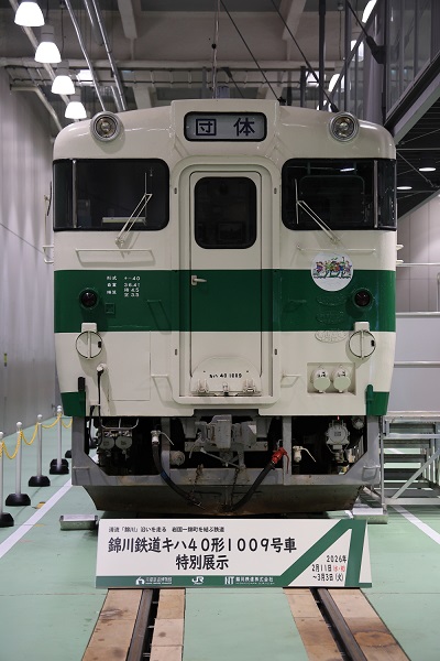 京都鉄道博物館で、2026年2月11日から錦川鉄道所属のキハ40の展示が始まった。展示されているのはキハ40 1009。JR東日本から錦川鉄道に譲渡された車両で、烏山線運用時代のカラーをまとっている。現在の所属は錦川鉄道とはいえ、JR東日本の車両がその当時の姿のままJR西日本の鉄道博物館で展示されるのは初めてのことである。