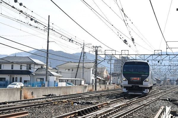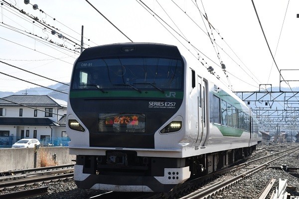 尾名高大蔵臨時特急「あずさ83号」。‘26.2.14 篠ノ井線 塩尻~広丘(2点共) 2026年2月14日、E257系5000番代OM91編成の臨時特急「あずさ83号」が運転された。■関連記事◆E257系5000番代OM93編成の「あずさ84号」を運転P:尾名高大蔵