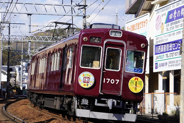 1707号の川西能勢口方先頭車のヘッドマーク。