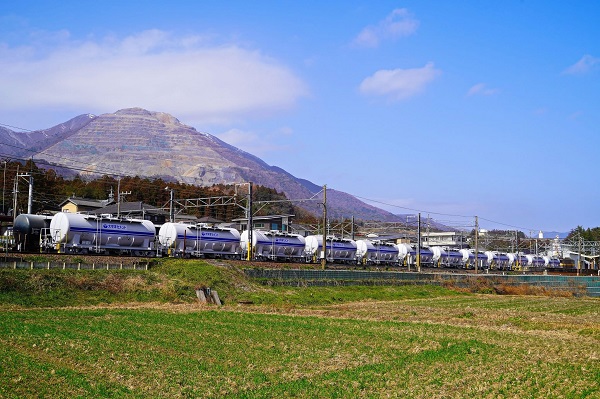 武内克弥太平洋セメント新型私有貨車。‘26.2.23 三岐鉄道三岐線 東藤原(3点共) 2026年2月23日、東藤原駅の留置線に、日本車輛で製造された太平洋セメント新型私有貨車「タキ1300-2」から「タキ1300-25」までの24両が停車していた。■関連記事◆三岐鉄道三岐線富田駅・タキ1300-2~25の現況P:武内克弥