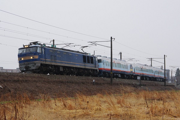 ルートおよび牽引機は、屋代~長野~直江津~黒井間が高崎機関区のEH200-12の模様、黒井~直江津~富山貨物間が富山機関区のEF510-506だった。