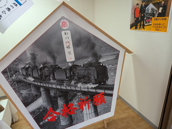 植松 繁駅待合室の一角に合格祈願絵馬が鎮座している。‘26.3.8 伯備線 新見 受験シーズンもいよいよ大詰めを迎えた。伯備線新見駅、待合スペースの一角には、地元船川八幡宮で祈願した絵馬が鎮座している。かつて多くのレイル・ファンを熱狂させた布原のD51三重連の絵馬から受験生や保護者、そして、JR社員を含む地域住民が三位一体となって、力強く前進する思いが伝わってくる。■関連記事◆伯備線なのに伯備線じゃない?岡山随一の秘境「布原駅」に降りてみた。P:上石知足