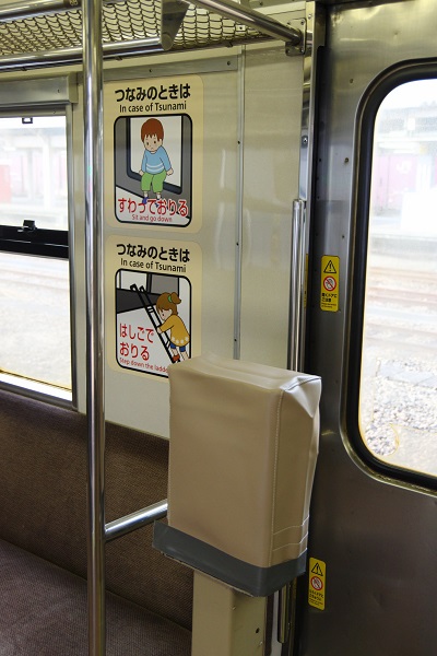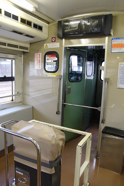 ICOCA(交通系ICカード)導入にともない、車内での精算は終了。運賃表示器や運賃箱はカバーをテープで巻き覆った。