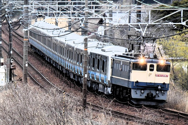 EF65 2092牽引の小田急5000形10両が豊川~松田へ甲種輸送
