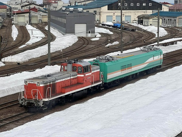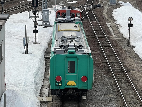 JR北海道では、2025年度第二四半期、経営改善に関する取り組み報告書で、電気検測車の制作と改造が発表されているが、マヤ35-1の電気検測車の改造が終わり、パンタグラフを設置し、キハ40 301+マヤ35-1+キハ40 304の編成で試運転を実施した。
