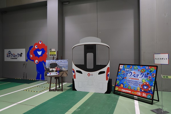 本館1階車両工場が、ミャクミャクでいっぱいだ。