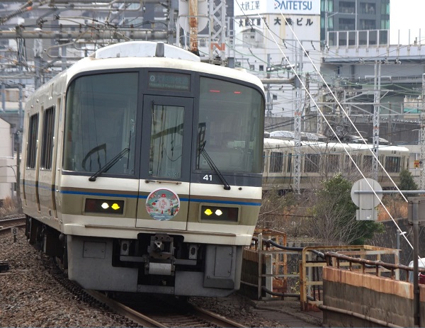 大庭裕和秀吉のヘッドマークを掲出した221系。‘26.3.21 大阪環状線 寺田町(2点共) JR西日本では、国営放送の大河ドラマ「豊臣兄弟」をPRするため、221系の一編成にヘッドマークを取り付けて運行している。■関連記事◆【221系と223系の併結運転が復活!】網干総合車両所に223系6000番代「BJ編成」が誕生P:石田圭一