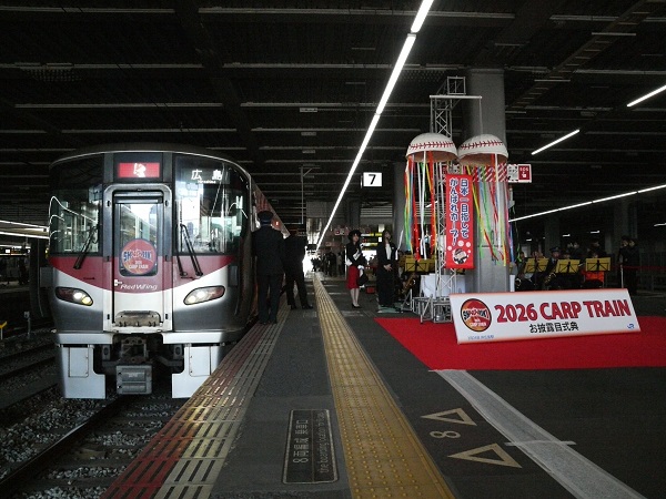 2026年3月24日、JR西日本中国統括本部広島支社と広島観光連盟では、2026年プロ野球シーズン開幕に合わせて、広島東洋カープを応援するカープラッピング列車が運転されることになり、同球団の選手や関係者を招いて広島駅で披露目式が開催された。