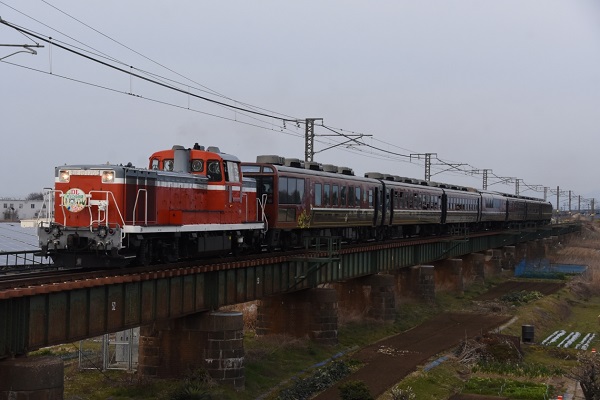 尾名高大蔵‘26.3.22 羽越本線 村上~岩舟町 「DL村上ひな街道」。‘26.3.22 羽越本線 京ケ瀬~新津(2点共) 2026年3月22日、前日に続き、羽越本線でDE10 1700が牽く「DL村上ひな街道」が運転された。運行区間は村上→新津間の片道であった。■関連記事◆羽越本線で「SL村上ひな街道」を運転(2日目)P:尾名高大蔵