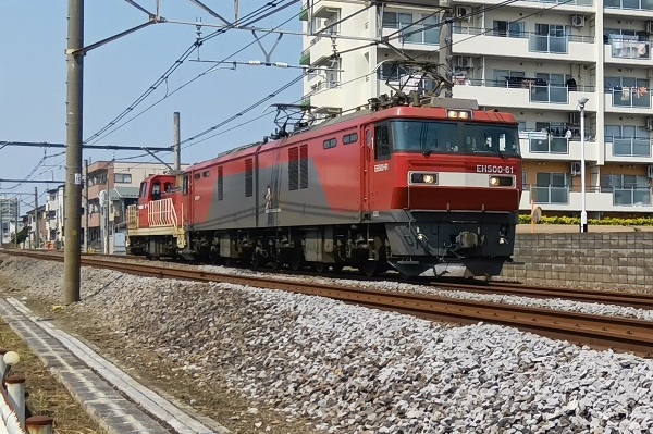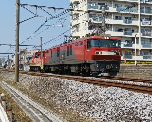 奈良仁一郎EH500-61に牽引され無動力回送のDD200-16。‘26.3.29 高崎線 北上尾~上尾 2026年3月29日、高崎機関区のEH200の仕業A221で臨時(8764列車)は、仙台総合鉄道部所属のEH500-61機関車次位に愛知機関区所属のDD200-16を連結し無動力回送となった。なお、運転区間は、高崎操車場~新鶴見信号場間だった。■関連記事◆「SL村上ひな街道」のDE10単機とSL返却回送P:尾名高大蔵