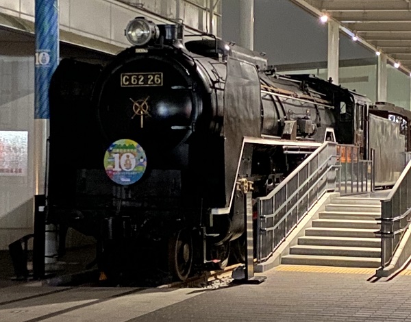 京都鉄道博物館は、2026年4月29日に開館10周年を迎える。3月中旬より館内の飾り付けなどの準備が順次進んでいるが、3月30日の閉館後に傍らを通り掛かったところ、C62 26に開館10周年のヘッドマークが取り付けられていた。