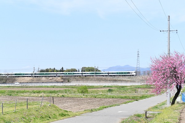 尾名高大蔵「あずさ71号」と菜の花。遅咲の桜と「あずさ83号」。‘26.4.25 中央本線 みどり湖~塩尻(3点共) 2026年4月25日、E257系5000番代OM91編成の「あずさ71号」とOM92編成の「あずさ83号」が運転された。■関連記事◆E257系5000番代の「あずさ71号」と「83号」を運転P:尾名高大蔵