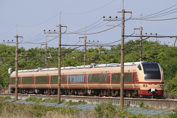 平塚始発と同じ2日間、川越~(川越線、武蔵野線、常磐線経由)~勝田間で、特急「絶景ネモフィラ川越号」が運行された。こちらも途中停車駅は、大宮、南浦和、南越谷、吉川美南、水戸だった。両日とも充当されたのは、E653系K70編成だ。