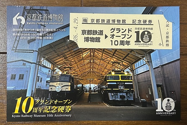 2026年4月29日、京都鉄道博物館は開館10周年を迎え、記念セレモニーを本館1階3車両前で行った。10周年という節目の年であり、歴代館長や近隣の住民など、大勢の来賓を迎え、音楽ユニット「大瀬戸千嶋」が京都鉄道博物館をイメージして作曲した「軌条の彼方」の演奏でスタート。