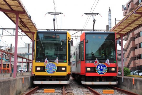 服部ひろみ10周年記念のエンブレムは、赤い10の文字に227系の顔とカラフルなラインがあしらわれている。'25.6.22 京都府京都市 京都鉄道博物館 京都鉄道博物館本館1階車両工…