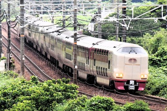 尾名高大蔵E257系5000番代の 「あずさ74号」。'25.6.22 中央線 塩尻~みどり湖 2025年6月21日に、「あずさ83号」として、E257系5000番代OM91編成が…