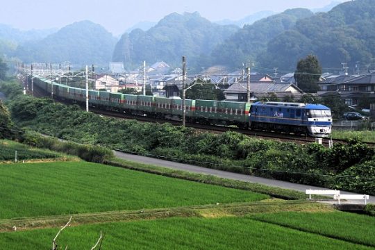 田部井毅大・大谷真弘白帯の桃太郎EF210-112に牽引され、種別・表示器が撤去された西武鉄道の2000系「2417+2419編成」4両が彦根へ旅立つ。'25.7.26 武蔵野線 …