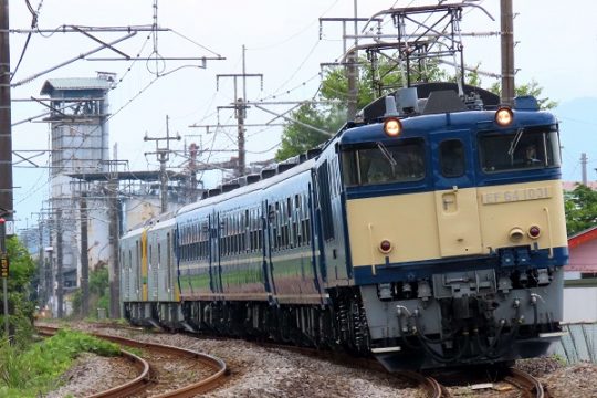藤倉顕治・齋藤有希EF64 1031がエスコートする「EL・GVぐんま横川」。GVにはヘッドマークが付いた。指定券の列車名は「SL・GVぐんま横川」のままだ。'25.8.11 信越…