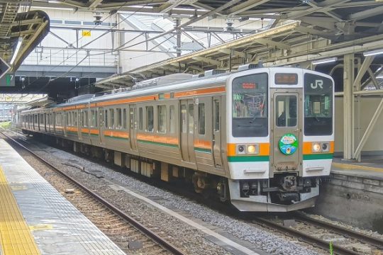 奈良仁一郎211系A57編成に、ぐんまちゃんのオリジナルヘッドマークが付けられた。'25.8.9 信越本線 高崎 2025年7月より高崎車両センター所属の211系3000番代のA2…