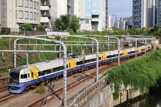 大森岳人・田部井毅大8月9日からの3連休初日は晴天の中の運行となった特急「新宿わかしお1号」の255系Be-03編成。'25.8.9 中央本線 水道橋~御茶ノ水 P:大森岳人大網駅…