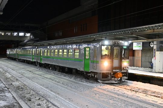 池端清美キハ150が3両編成。'26.01.28 室蘭本線 岩見沢 室蘭本線は、通常1両または2両編成だが、キハ150の3両編成が走った。乗車は先頭の1両のみ、後ろ2両は回送列車。…