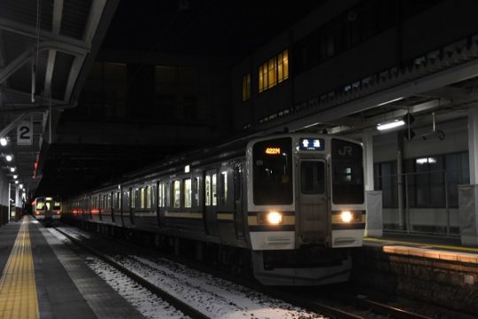 尾名高大蔵スカ色の211系N608編成。'26.1.28 中央本線 岡谷(3点共) 2026年1月28日、スカ色の211系N608編成が、岡谷始発の上り422Mの運用に入った。■関…