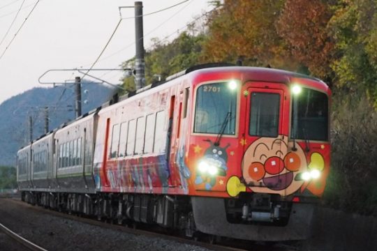 植松 繁高松方2602号車はオレンジベースで「アンパンマンとそのなかまたち」。徳島方2652号車はブルーベースで「ばいきんまんとそのなかまたち」。連結部分にはキャラクターが大きく描…