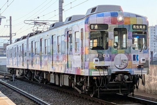 植松 繁作品が創り上げられていく過程をラッピングで表現している。'25.12.6 高松琴平電気鉄道琴平線 伏石(2点共) 高松琴平電気鉄道では、2025年12月4日から、琴平線12…