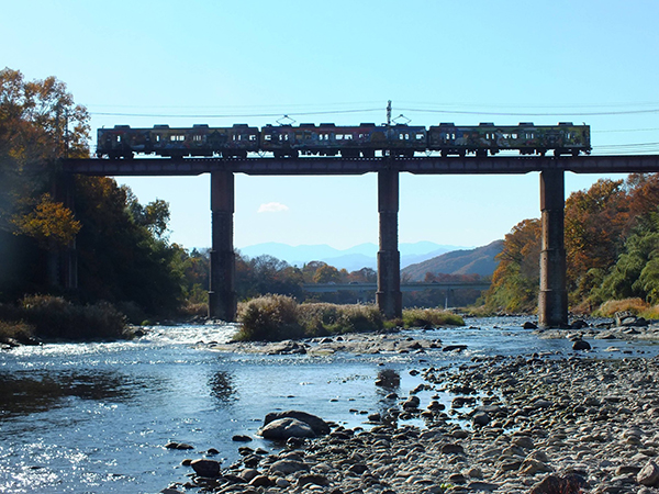 紅葉を目当てに撮影しに来たときに7500系7505編成「秩父三社トレイン」が荒川橋梁を渡っていくところを目撃したので、撮影しました。