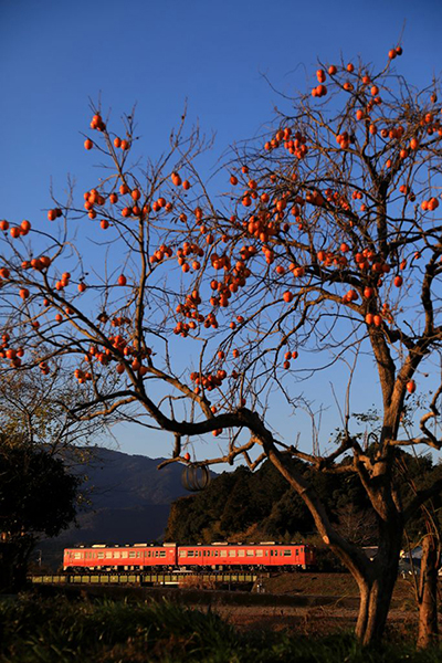 冷え込む早朝、朝陽を浴びて四国唯一のキハ47たらこペアが走り去った。