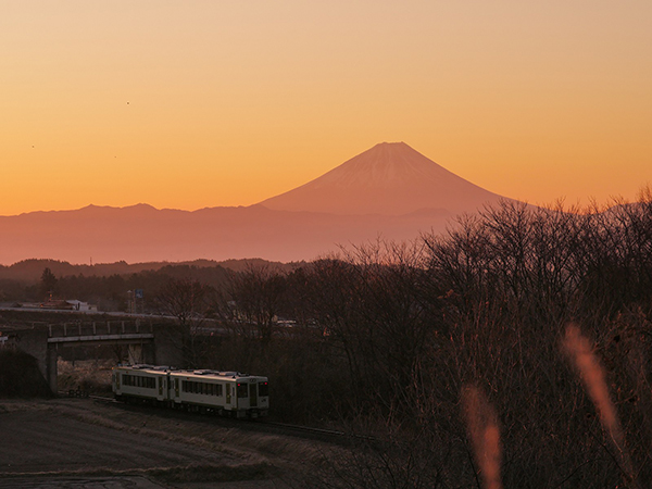 日の出に照らされた富士山ときれいなコントラストでした