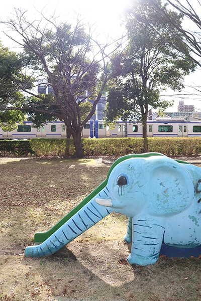 公園のゾウさんが、ひなたぼっこをしていました。