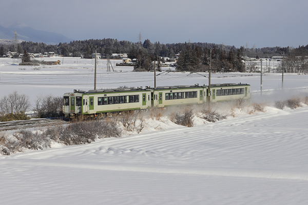 雪晴れの東北本線を行く快速「はまゆり」。往年の急行列車を彷彿させる架線下の力走ももうすぐ見納めです。