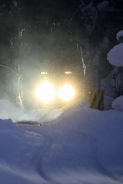 ヘッドライトに浮かび上がったトンネル内のつららが北飛騨の厳しい寒さを物語っていました。