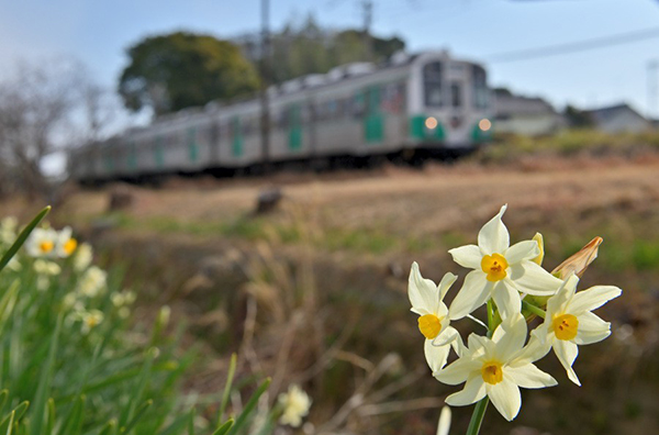 小川の河原に咲く水仙が美しく、見とれてしまいました。
