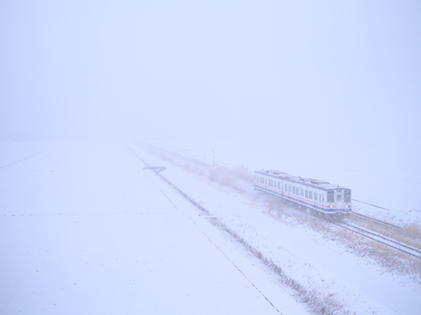 茨城では珍しい大雪。一面の銀世界を気動車が往く。