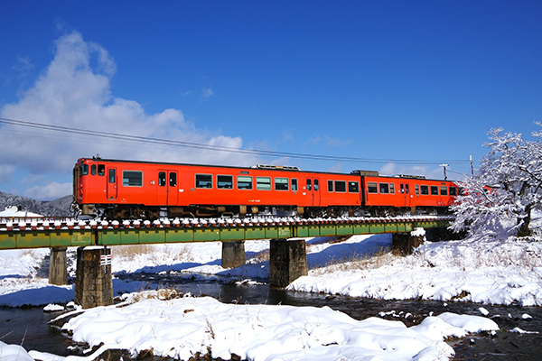 大雪に見舞われた芸備線ですが、それまでの天気が嘘のように晴れ渡りました。雪の白と列車の朱色が良い感じに撮影出来たと思います。