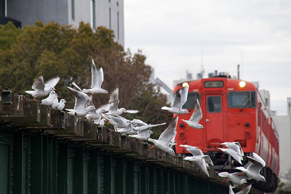 線路際にカモメが沢山居たので共演して頂きました。
