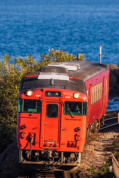 タラコ色のキハ40が、夕陽を浴びてカーブから姿を現しました。