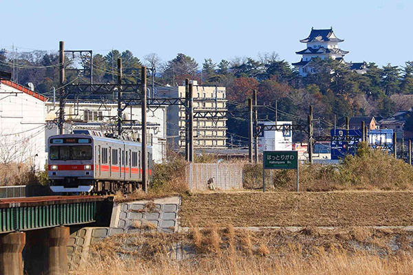 伊賀鉄道定番の風景ですが 伊賀上野城をバックに東急1000系が走ります。