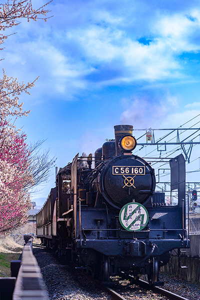ポカポカ陽気の中、梅香る鉄路をゆっくり進むC56形ポニー。