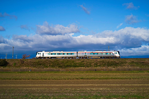 矢橋町築堤を駆け抜け、名古屋に向かう特急「南紀2号」2両編成。