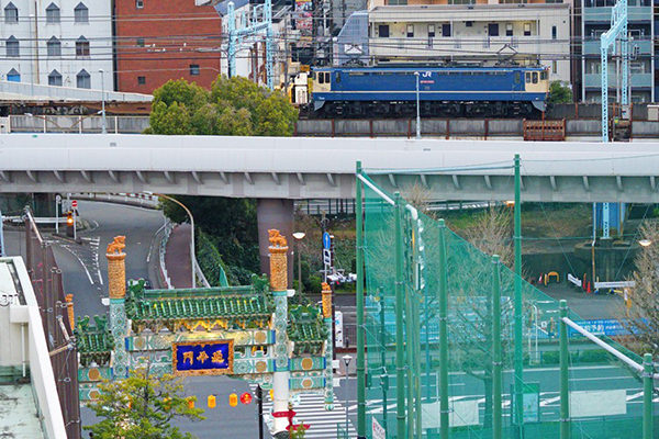 横浜中華街の入口延平門を見下ろしながら。